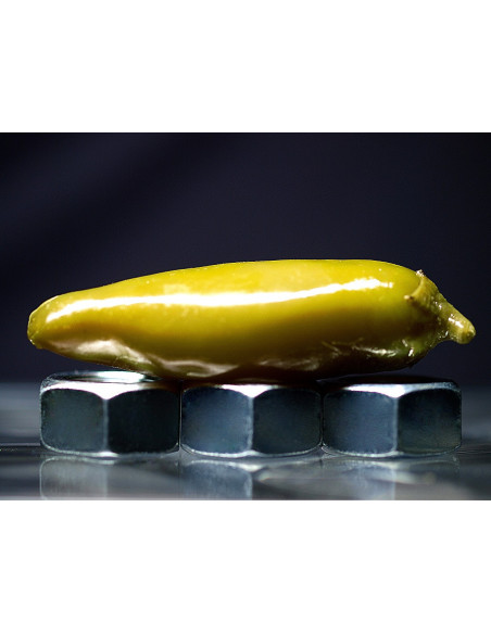 Auténticos chiles jalapeños escabechados sin conservantes ni colorantes artificiales. Cultivados y envasados en León. El producto se presenta en tarro de cristal transparente, con peso neto de 360 g y escurrido de 290 g. Ingredientes: Chiles jalapeños, zanahoria, cebolla, ajo, aceite de oliva virgen, vinagre, sal y especias. Ideal para acompañar gran variedad de platos, desde pizza a legumbres, arroces, etc, dándoles un toque picante y atrevido.
