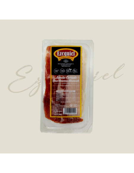 AHUMADO con leña de roble: Nuestros jamones son procedentes de un cuidadoso proceso de elaboración 100% natural con cerdos provenientes de Castilla y León. El jamón Ezequiel es un producto que destaca por ser curado y ahumado con leña de roble en nuestras bodegas ubicadas en la montaña central leonesa. JAMÓN CURADO GRAN RESERVA con un proceso de curación superior a 24 meses. SIN GLUTEN, SIN LACTOSA, SIN CONSERVANTES, SIN ADITIVOS Para disfrutar al máximo de su SABOR, recomendamos mantenerlo en un lugar fresco y seco, con una temperatura que no supere los 25ºC. Desgustarlo AL CORTE EN LONCHAS MUY FINAS. Preferiblemente con corte a cuchillo. Perfecto para consumir solo o acompañado de un buen vino, en bocadillo, tapa o para sorprender en cualquier comida, aperitivo o cena a amigos y familiares.