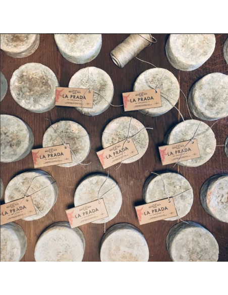 Queso semicurado de leche cruda de vaca. Ingredientes: leche cruda de vaca, fermentos, cuajo y sal. Producto kilómetro cero. Elaborado con leche de ganadería extensiva familiar. Madurado en cámara semienterrada con paredes de piedra natural durante 2 meses. Corteza natural comestible, con una fina capa de moho superficial que le aportan un retrogusto maduro y peculiar. Textura firme, semiblanda y cremosa que se deshace en la boca, de color amarillento y sabor intenso con matices herbáceos. Peso aproximado 450gr. Conservar entre 6ºC y 8ºC. Se aconseja atemperar fuera del envoltorio media hora antes de su consumo.