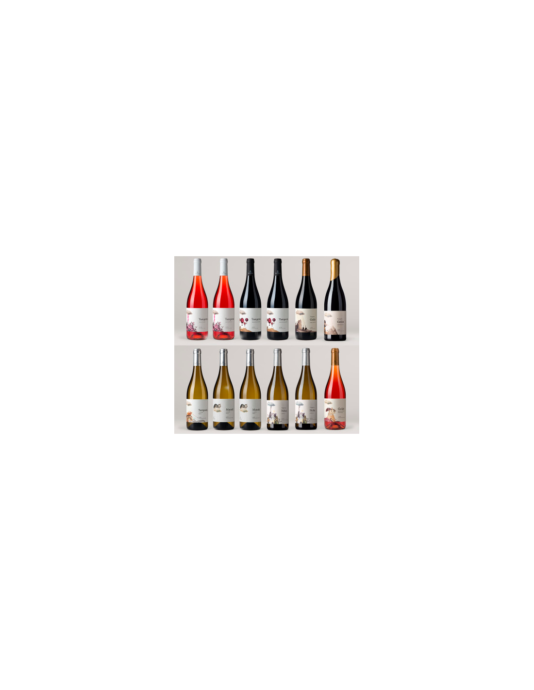1x Tampesta Albarín / 2x Maneki / 2x Neko / 2x Tampesta Rosado / 1x Golán Rosado / 2x Tampesta Tinto / 1x Golán Tinto / 1x Golán Tinto Edición Limitada.